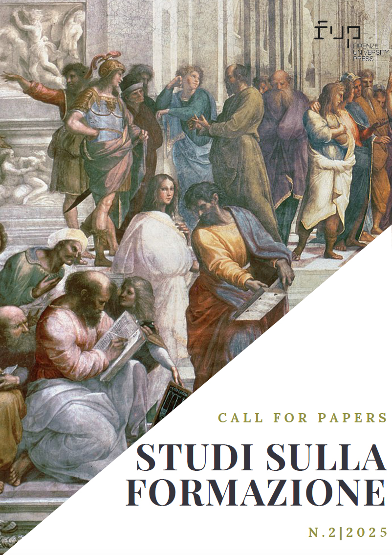 The dossier of the second edition of the journal “Studi sulla Formazione” in 2025 will develop this topic. We welcome contributions by Italian and foreign scholars, ware interested in the topic. The academic authors should communicate the title and the short abstract of the article and should send the final article (about 6.000-15.000 characters, spaces included) by September, 30th 2025 .