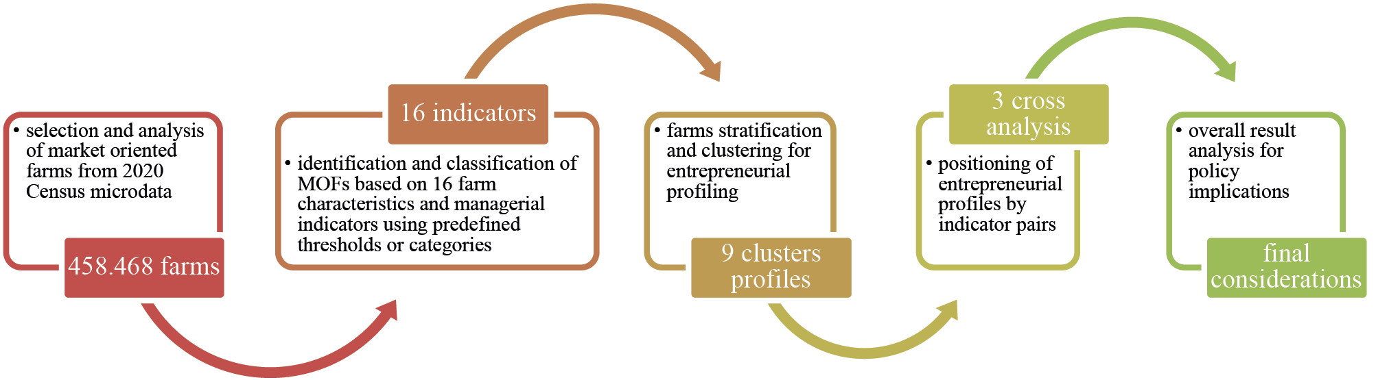 Figure 1 illustrates our methodological approach and the data flow followed in this study. We identified and classified MOFs by using a set of indicators of entrepreneurial characteristics and behaviours and then associated each group with a distinct entrepreneurial profile. Finally, we compared the profiles were compared to each other to highlight their similarities and differences.